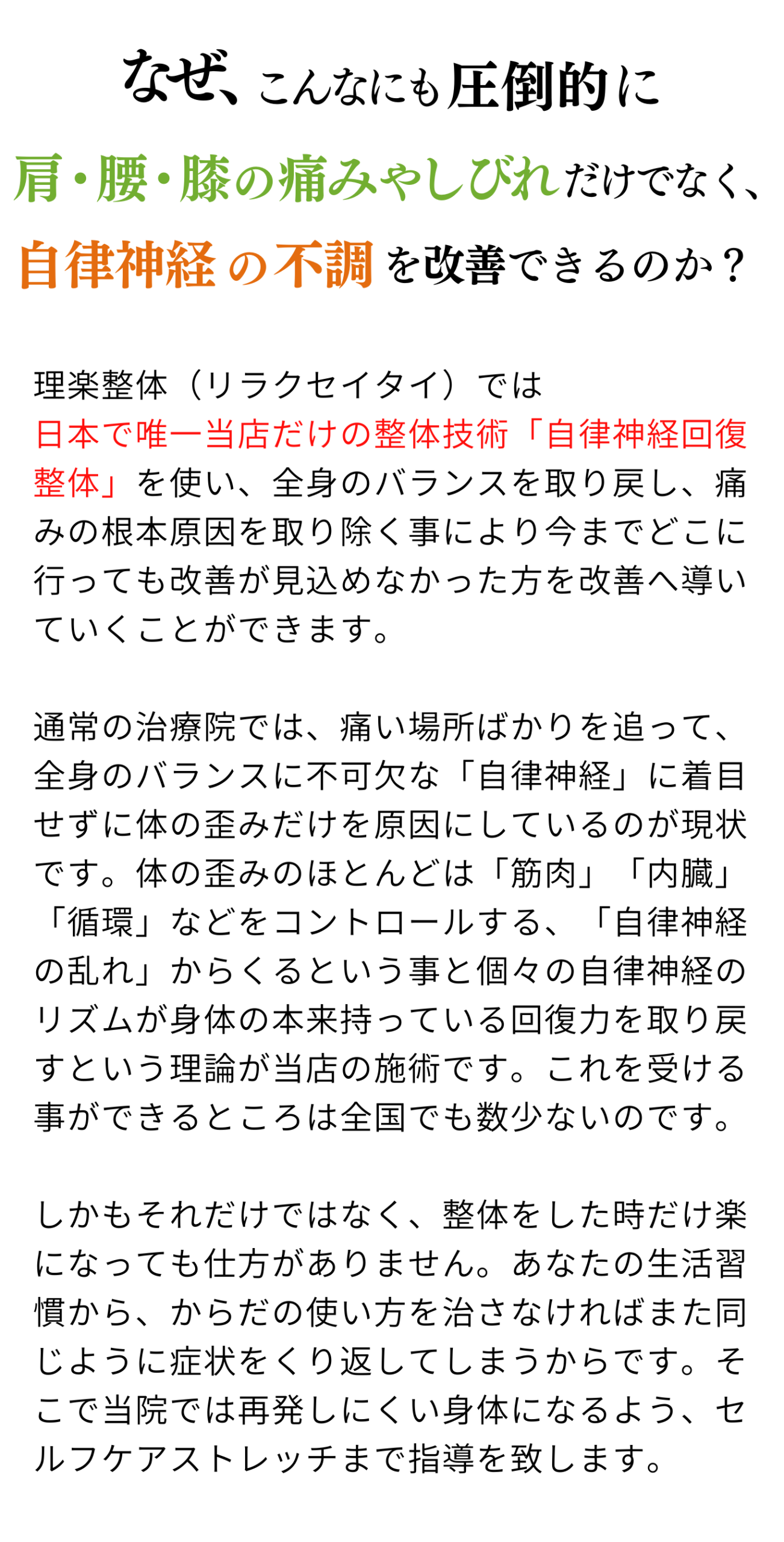 適応症状「 理楽整体 」